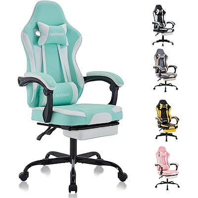 NIONIK ゲーミングチェア オットマン付き デスクチェア オフェスチェア 連動ひじ掛け ハイバック ゲーム用 チェア gaming chair 白 可愛い …