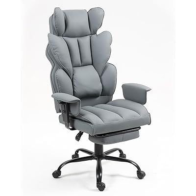 さらに、背もたれ部分にはPU本革が使われているとのことなので、お手入れもしやすく、見た目にも上質感が感じられるのではと想像します。本革のような高級感を持ちながらも、PU素材なので比較的手軽に扱える点も魅力に感じます。グレーというカラーも、どんなオフィスやお部屋にも馴染みやすそうです。