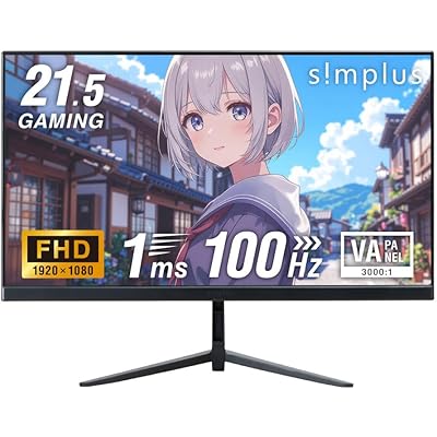 simplusの21.5インチ ゲーミングモニターは、コストパフォーマンスと実用性を両立させたモデルという印象を受けました。100Hzのリフレッシュレートと1msの高速応答は、特に動きの速いゲームやアクションシーンで滑らかな映像を楽しみたい方にとって魅力的です。一般的な60Hzモニターに比べて、よりスムーズな描写が期待できるため、カジュアルなゲーミング用途には十分対応できそうです。