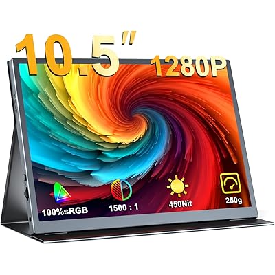 EVICIV モバイルモニター 10.5インチ ポータブルディスプレイ 超軽量250g 高輝度450nits 100%sRGB広色域 画像比自動適合 FHD12 …