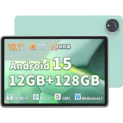 このAzeyouの10インチAndroidタブレットは、最新のAndroid15 OSを搭載し、ハード・ソフトの両面で進化を感じさせるスペックです。特に、12GBメモリ+128GBストレージという構成は、一般的なタブレットよりもかなり余裕があり、動画視聴やゲーム、マルチタスクでもパフォーマンスに不満を感じにくそうです。最大1TBまでのSDカード拡張もできるため、データ保存の自由度も高いのが魅力です。