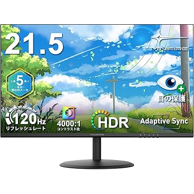 Minifire モニター 21.5インチ pcモニター 120Hz フルhd 非光沢 液晶ディスプレイ Adaptive Sync VESA対応 フレームレス …