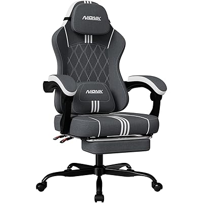 ゲーミングチェア ファブリック オットマン付き オフィスチェア デスクチェア 通気性 テレワーク 疲れない 椅子 人間工学設計 連動式アームレスト 145°リク …