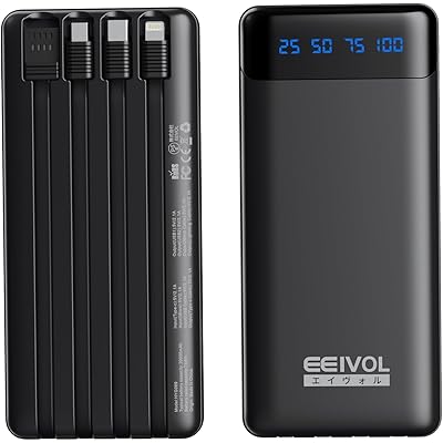 エイヴォル モバイルバッテリー 20000mAh 4本ケーブル内蔵 5台同時充電 電気残量表示 LEDライト 懐中電灯 軽量 小型 大容量 携帯バッテリー スマ …
