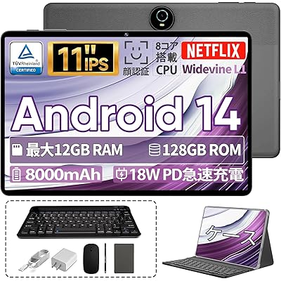 11インチのディスプレイはWidevine L1対応で、Amazon Primeビデオなどのストリーミングサービスで高画質再生ができる点も嬉しいポイントです。顔認識によるロック解除も便利だと思います。全体的に、価格帯を考えると、性能・機能面ともにかなり充実したタブレットという印象を持ちました。キーボードやマウス、ケースなどの付属品が最初からセットになっているのも、初めてタブレットを使う方やコストを抑えたい方には大きなメリットだと思います。