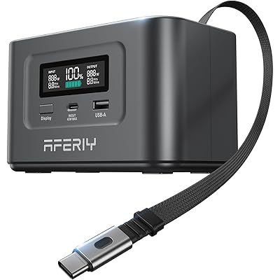AFERIY 145W ポータブル電源 99.2Wh/31000mAh 伸縮式Type-Cケーブル内蔵 ポータブルバッテリー 小型 飛行機持ち込み可 リン酸鉄リ …