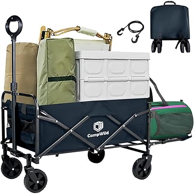CampWild アウトドアワゴン 折りたたみ キャリーワゴン 自立収納式 後ろ開けキャンプワゴン 長物対応 容量が30%増加 耐荷重120kg コンパクト大容 …